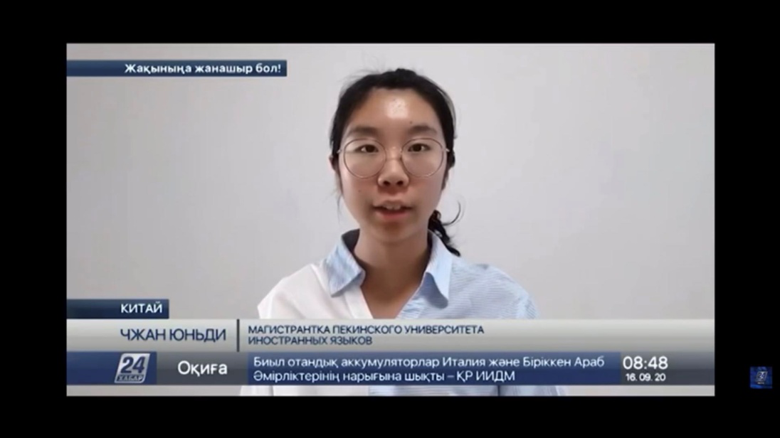 9月15日下午,由哈萨克斯坦驻华大使馆举办的“阿拜读诗会”以线上形式隆重举行。公司硕士新生张韵迪同学代表北外beats3652016级首届俄哈复语班,朗读了2013年习近平总书记在纳扎尔巴耶夫大学演讲时引用的阿拜名言:“世界有如海洋,时代有如劲风,前浪如兄长,后浪是兄弟,风拥后浪推前浪,亘古及今皆如此”。张韵迪同学出色的朗读赢得了与会嘉宾的好评。会后,哈萨克斯坦Хабар-24电视台驻华记者对她进行了采访。