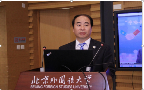 王定华书记回顾了一年前习近平主席给北外老教授的回信,强调了北外在外语人才培养方面的历史使命,介绍了北外哈萨克斯坦研究中心的发展现状,并对中心的未来发展寄予厚望。他指出,时值中哈建交三十周年之际,哈中心发起举办本次学术会议,各位学者主动分享研究成果,有利于丰富对中哈关系的深层认知,推动国别与区域国别领域的研究,并为培养语言和研究人才创造更多的条件。