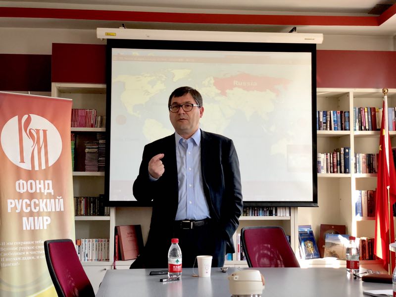 季哈诺夫在讲座中追溯了欧亚主义的理论缘起和历史发展脉络,介绍了该流派的主要代表人物,并阐释了其核心思想内涵及深远影响。他指出,欧亚主义作为兴起于上世纪二十年代的政治思想和历史哲学流派,是俄国侨民知识分子对俄罗斯的民族身份认同和历史文化属性的全新思考与探索,对于理解俄罗斯与东西方文明的关系乃至当今俄罗斯的国家发展道路都有着迫切的理论和现实意义。