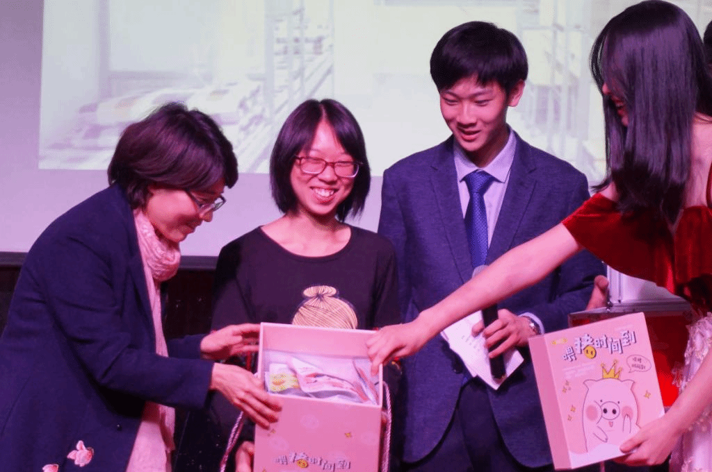 当然,轻松欢快的晚会也不乏观众的参与。《我是歌王》和《寂静的呐喊》两轮游戏将同学们的欢乐推向高潮,参与游戏的同学中也有一些幸运儿在抽奖环节获得了丰富的奖品。