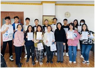 为鼓励中亚语专业同学的学习积极性,beats365经理戴桂菊教授、哈萨克斯坦中心主任孙芳副教授为参加书法比赛的2020级复语班全体同学颁发了奖状和奖品,肯定了同学们近三个月的学习成果,并祝愿同学们在接下来的学习过程中再接再厉,取得更大进步。