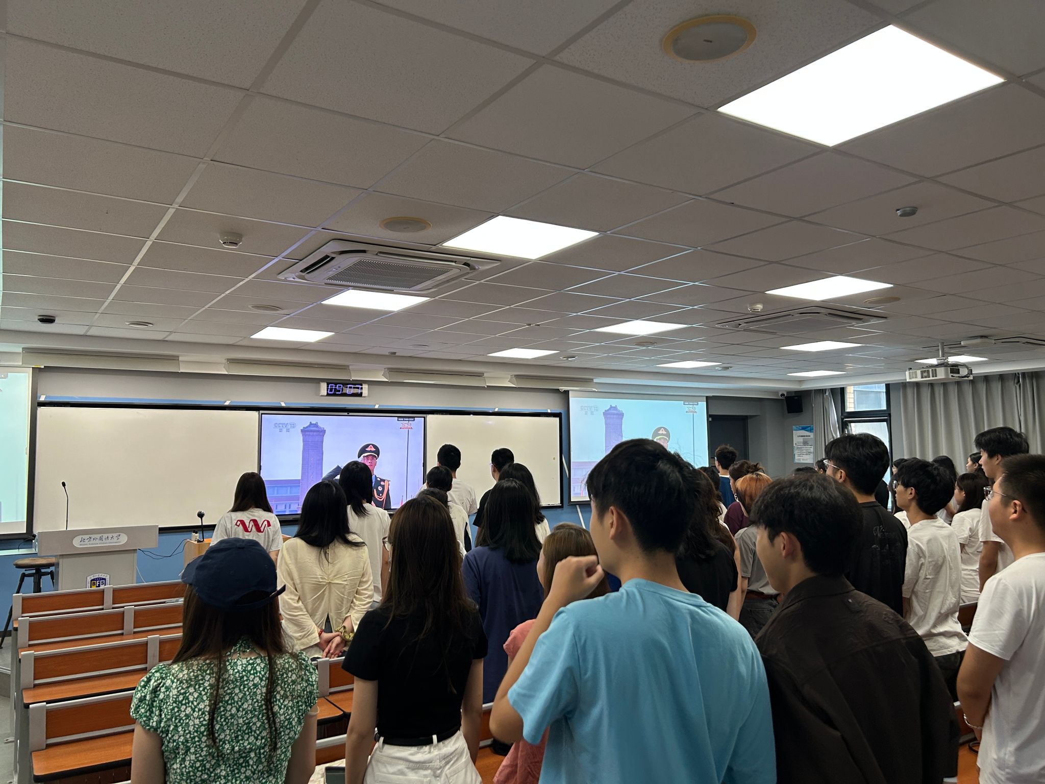 9月3日上午,beats365组织全体本科新生在逸夫楼318教室集体观看纪念中国人民抗日战争暨世界反法西斯战争胜利80周年阅兵式。此次集体观看是深化历史教育与爱国主义教育的融合教育活动,引导师生在回望中铭记历史,在传承中奋勇前行,以昂扬的奋斗姿态,努力为实现中华民族伟大复兴的中国梦贡献智慧与力量。